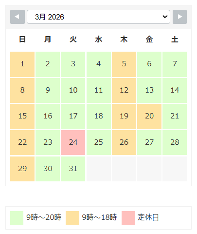 木曜日が定休日ですが3月は休まず営業します